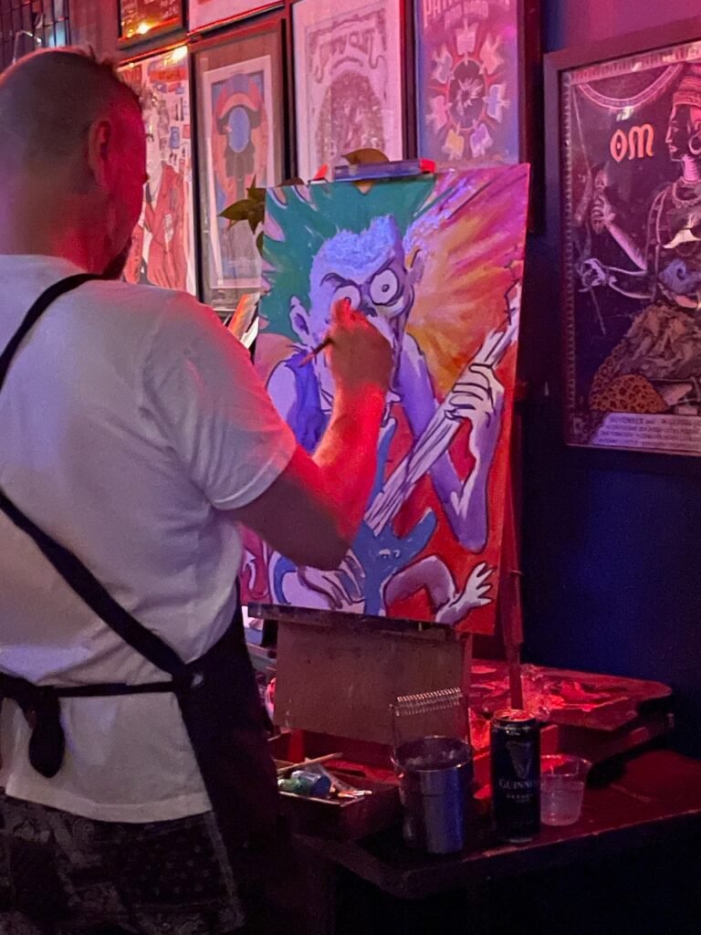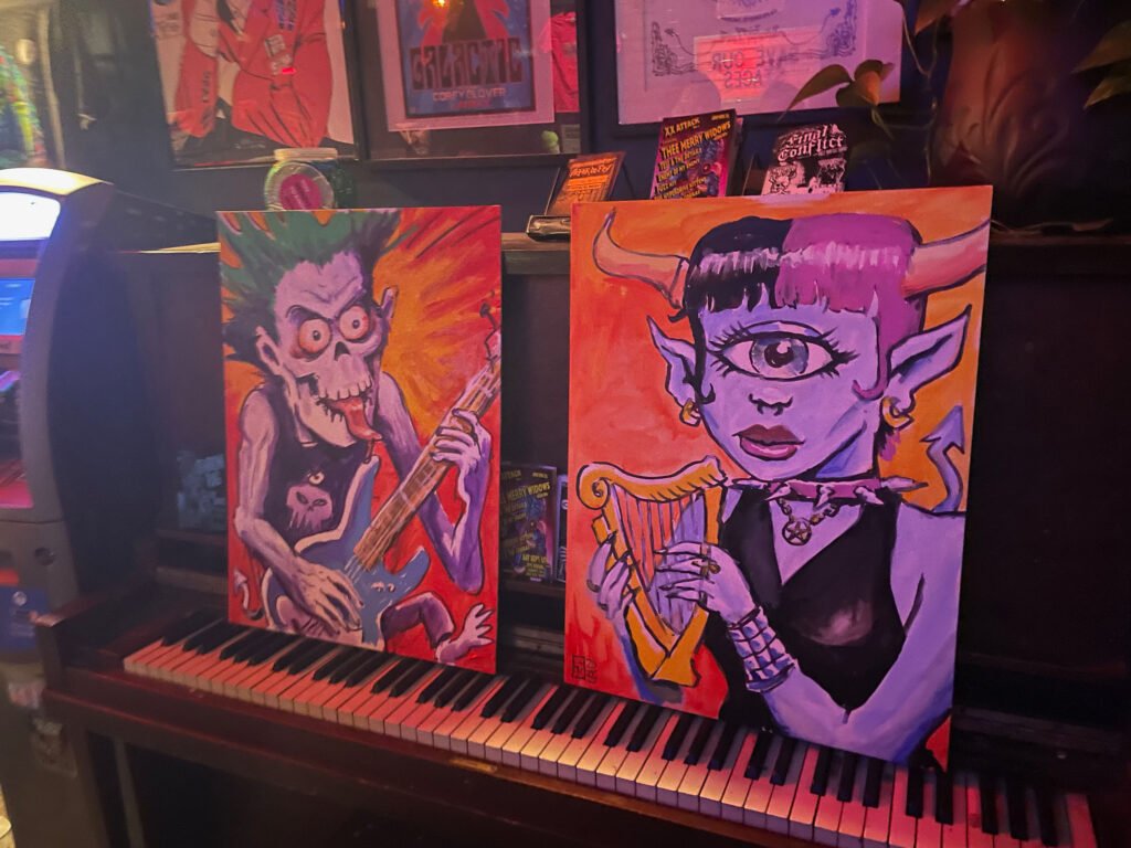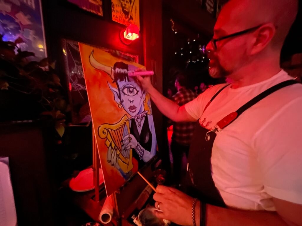 In Jan 2025 I was invited to do some live painting at Bang The Bay, which happens every first and third Wednesday from 6pm to 11pm at The Ivy Room in Albany. It was even crazier than Art Battle with music from awesome bands plus a great crowd who gave me lots of nice compliments. I met Lady Starbeast, who invited me to paint at their punk rock circus event at The Starry Plough in Berkeley on April… so see you again then!