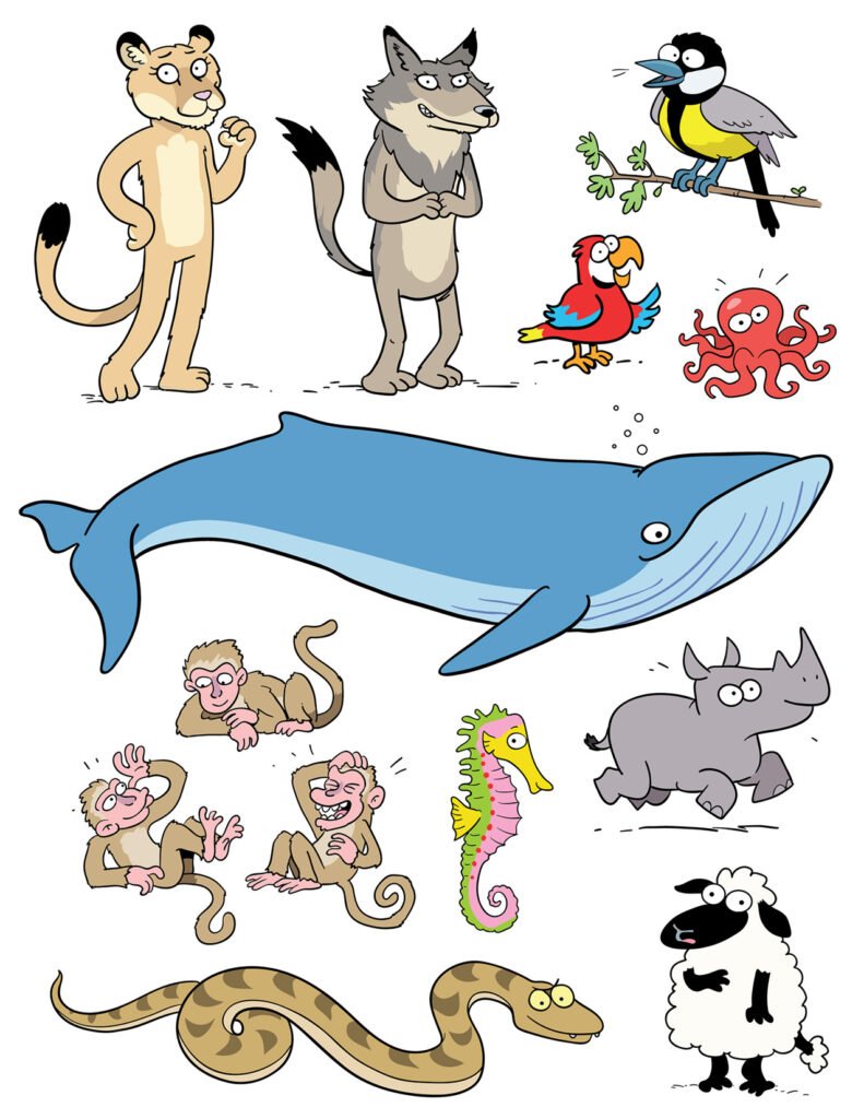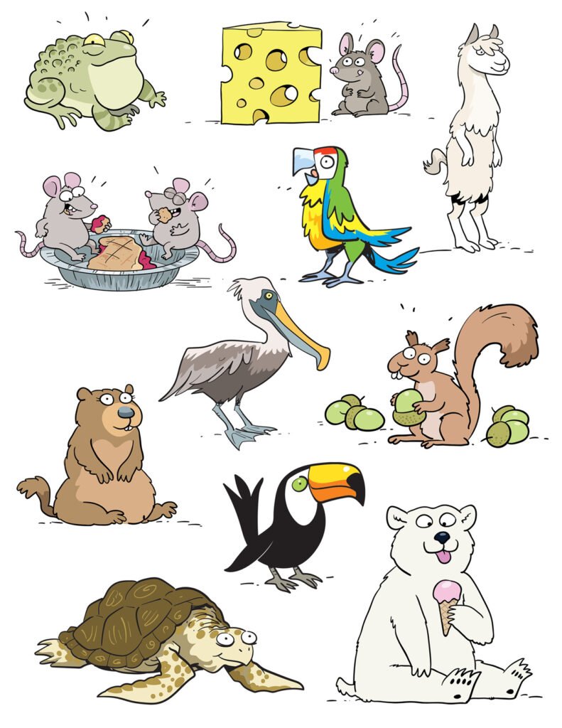 Funny Animal characters designed by Chuck Whelon and commissioned by T.C. Media‘s Chenelière Éducation in Quebec Canada for use in schoolbooks teaching Math and Language Skills to 3rd-6th Grade Students. Artwork ©Chuck Whelon 2020