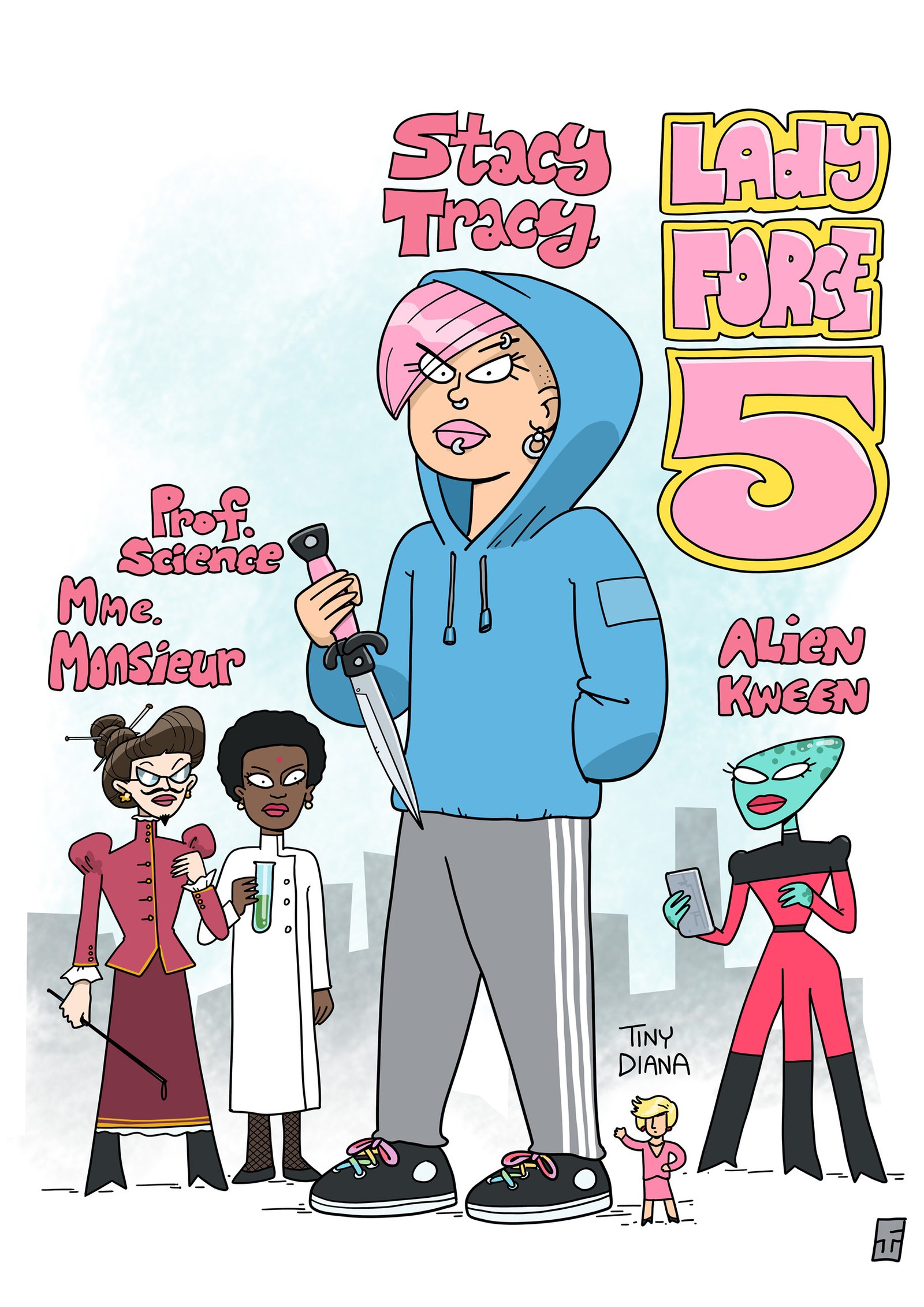 Alien Kween is the most mysterious member of this crime-fighting group. Her species has deemed the human race suitable for extermination, but first she has been assigned the task of collecting as much data on them as possible, for posterity.