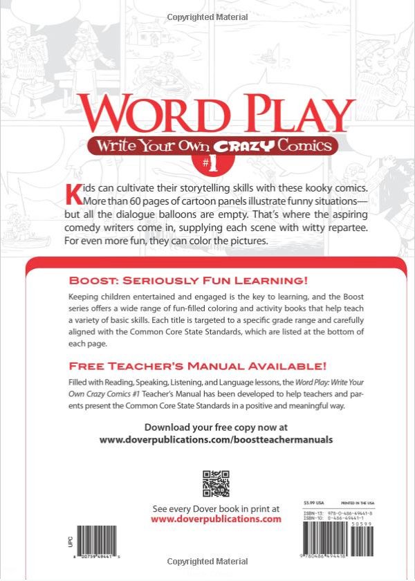 Kids can cultivate their storytelling skills with these kooky comics. More than 60 pages of cartoon panels illustrate funny situations — but all the dialogue balloons are empty. That’s where the aspiring comedy writers come in, supplying each scene with witty repartee. For even more fun, they can color the pictures. Free Teacher’s Manual available. Grades: 3–5.Boost: Seriously Fun Learning!