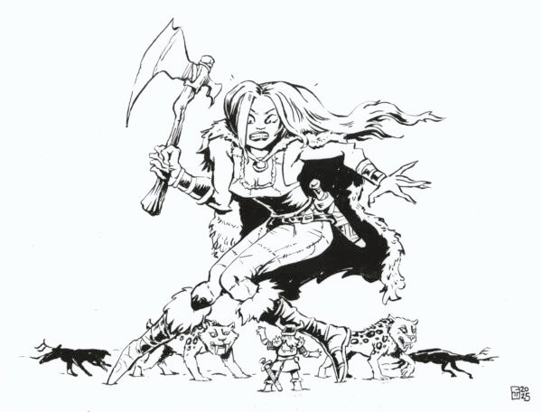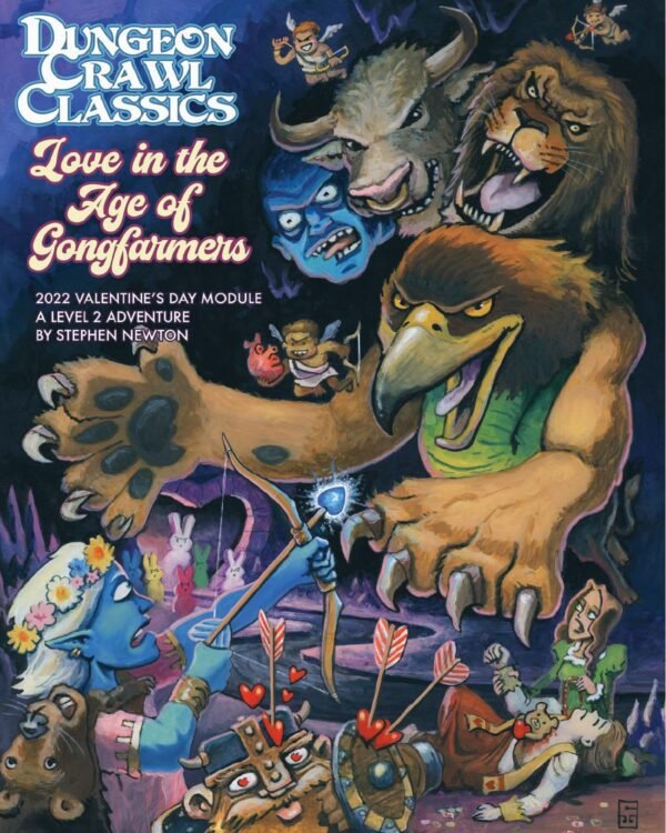 One of his earliest contributions was the cartoons featured throughout the Dungeon Crawl Classics Rulebook, where his humor and attention to detail brought levity and character to the pages. Over the years, he has illustrated covers for Dungeon Crawl Classics and XCrawl Classics modules, as well as the XCrawl Classics Softcover Rulebook, giving each project a unique, immersive fantasy aesthetic.