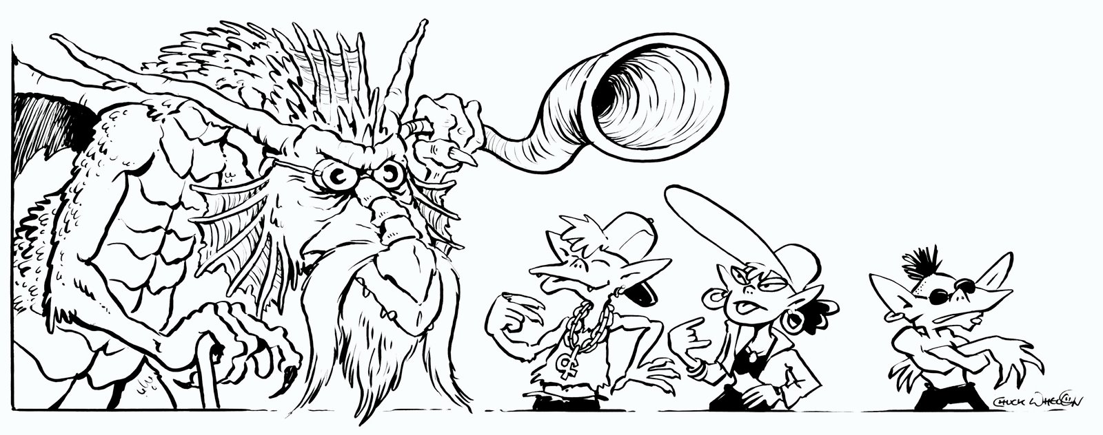 In addition to covers and cartoons, Chuck has provided extensive interior illustrations, adding depth and personality to the worlds created within the rulebooks. His artwork helps bring monsters, characters, and fantastical locations to life, enhancing the gameplay experience for both players and game masters.
