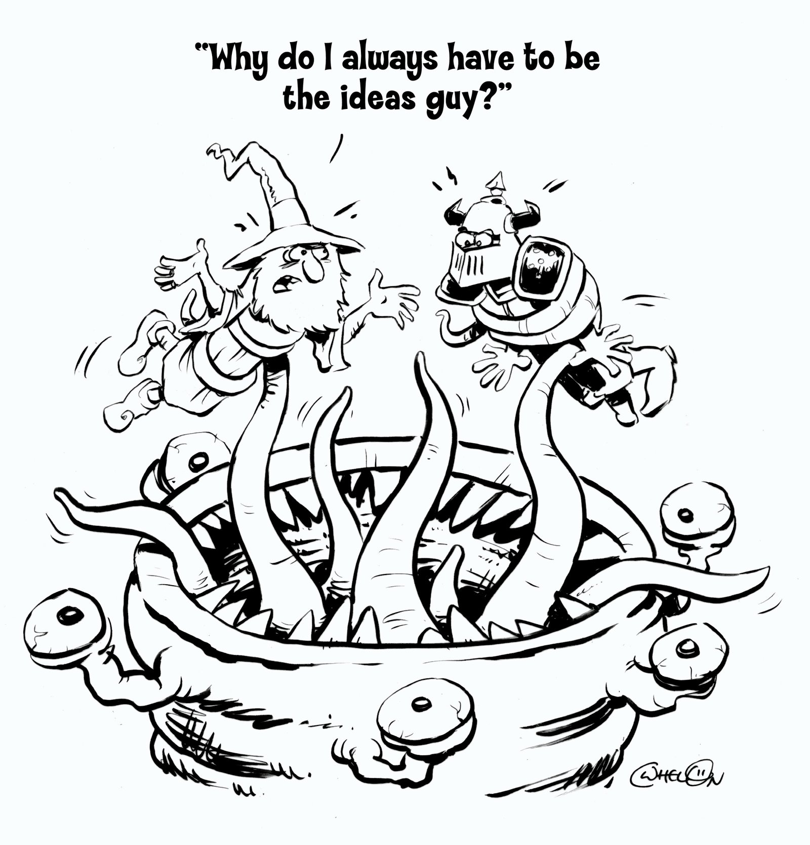 Chuck Whelon has been collaborating with Goodman Games for over two decades, contributing a wide range of illustrations for their fantasy role-playing game lines. From cartoons to covers, from interior artwork to intricate maps, his work has helped define the visual identity of some of the most beloved tabletop RPGs in the industry.