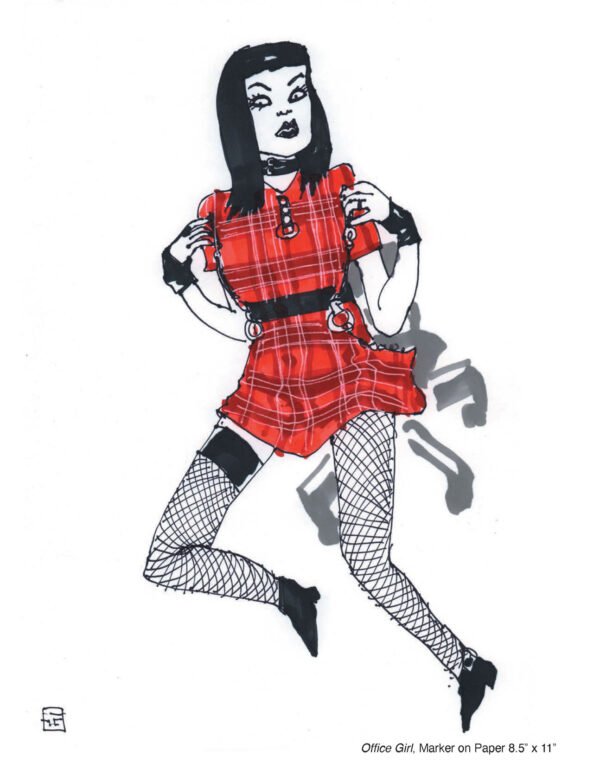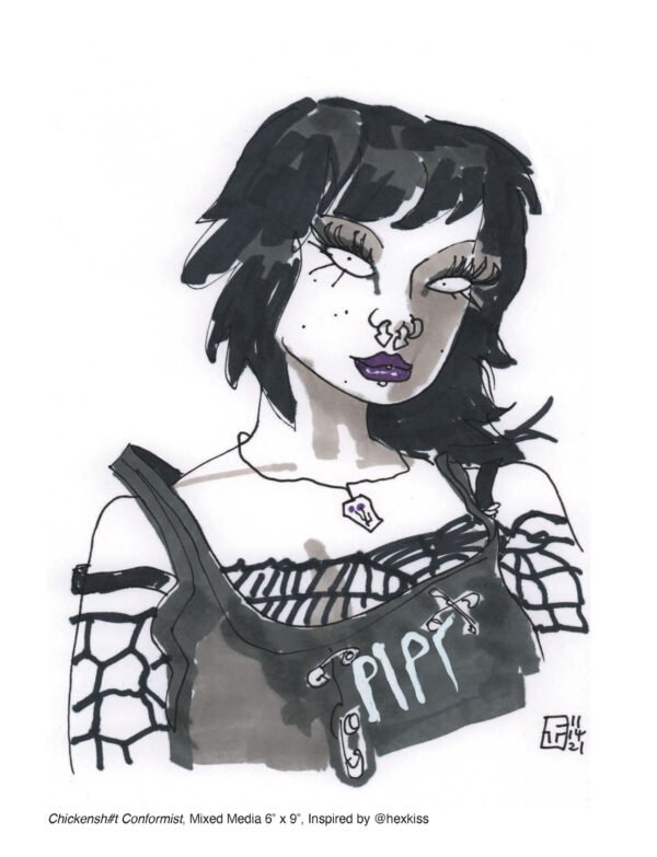 Instagirlz is a raw, unapologetic collection of punk fashion and alternative portrait art, brought to life by cartoonist and illustrator Chuck Whelon. This 95-page art book is a visceral exploration of subculture style, capturing the bold energy, attitude, and defiance of alternative models in stunning pen & ink illustrations.