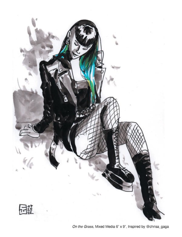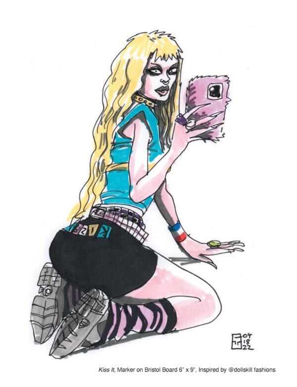This collection of alternative fashion illustrations captures fierce, spontaneous energy—whether striding down the runway, lurking in alleys, or lounging at home. Ideal for fans of tattooed punk portraits, edgy figure drawing book enthusiasts, and devotees of punk zine style art. Let Instagirlz electrify your visual world with unapologetic attitude and underground style.