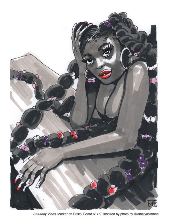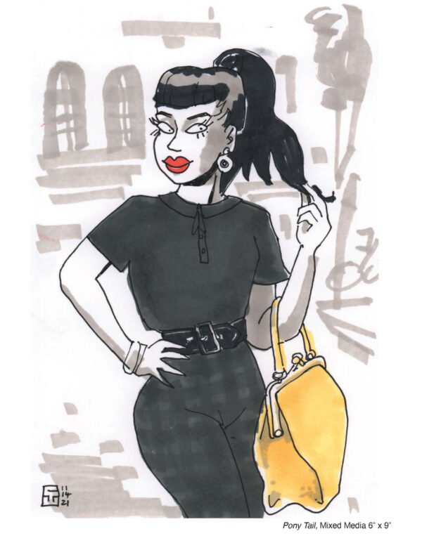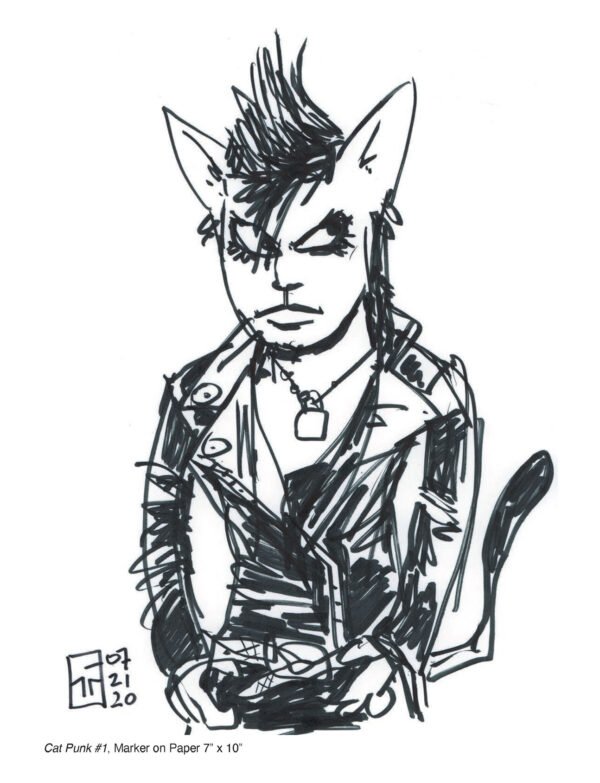 Expressive Pen & Ink – The art captures motion, energy, and character through loose, spontaneous line work that emphasizes texture, shadow, and attitude.