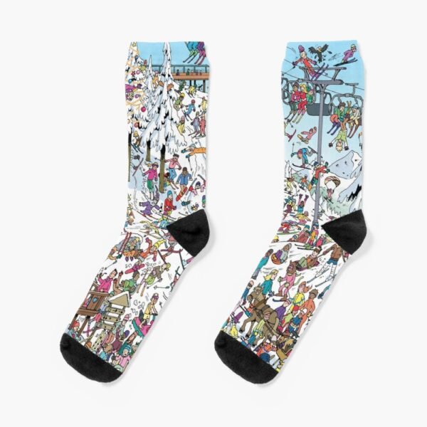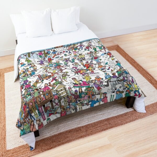 It’s a beautiful day and there’s fresh powder… so of course the slopes are a bit crowded! Perfect for skiers, snowboarders, and holiday-lovers everywhere. A colorful scene from Chuck’s book “Where’s the Elf?”. Also availaible on mugs, tshirts, leggings, and more.