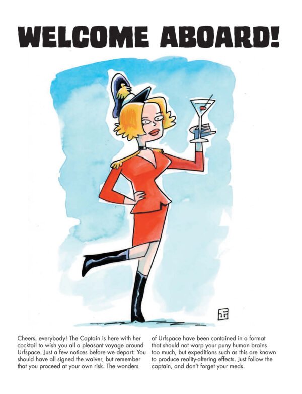 Known for his humorous, watercolor sci-fi comic illustrations, Whelon brings Urfspace to life with a mixture of satire, dark comedy, and playful invention. The artwork is rich with detail, inviting readers to explore every corner of the page, discovering strange characters and bizarre scenarios.