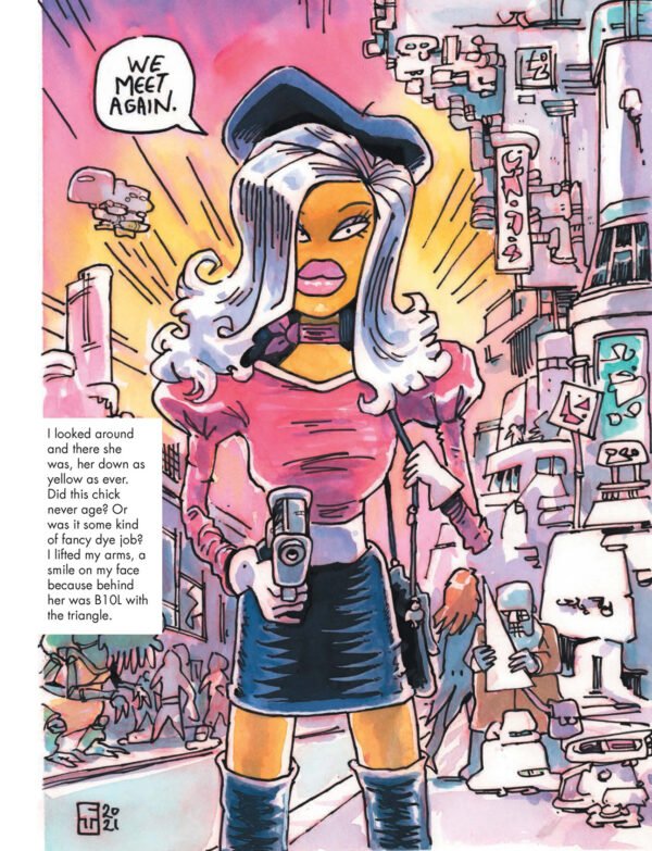 As an indie sci-fi art book, Urfspace Beyond Into the Radlands is part of Whelon’s larger Urfspace project—a multi-faceted universe spanning books, comics, music, and more. It’s a standalone collection but also connects to other Urfspace works like Urfspace: Cartoons of the Future and the album The Future Sounds of Urfspace. Fans of alternative comics, independent art, and imaginative world-building will find plenty to enjoy here.