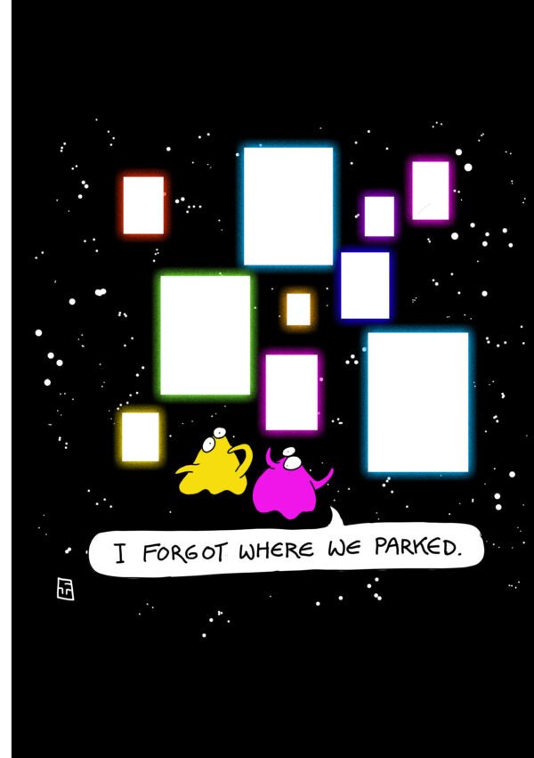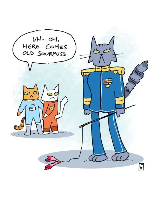 Set in the colorful and strange world of Urfspace, the cartoons explore a future that is both bizarre and delightful. Robots, aliens, interstellar travelers, and quirky inventions populate the pages, creating a playful vision of what life could be like in the far reaches of space. Whelon’s cartoons mix visual humor, clever gags, and imaginative scenarios, making each page an adventure in itself.