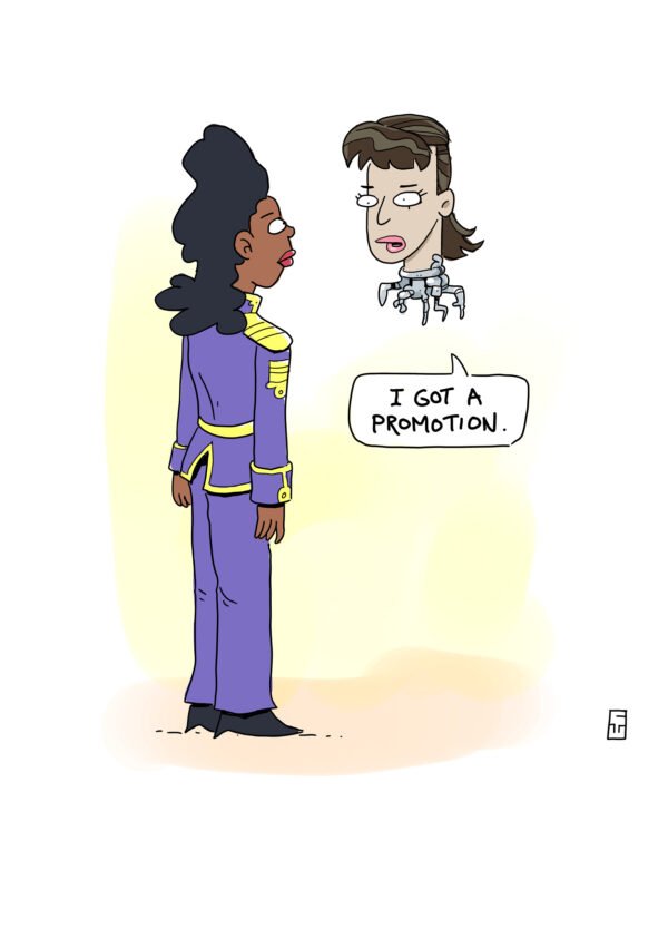 Distinctive Cartoon Art – Whelon’s graphic style brings a classic cartoon sensibility to sci-fi settings, with playful lines, expressive faces, and big laughs.