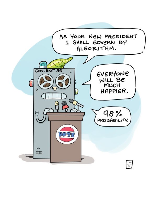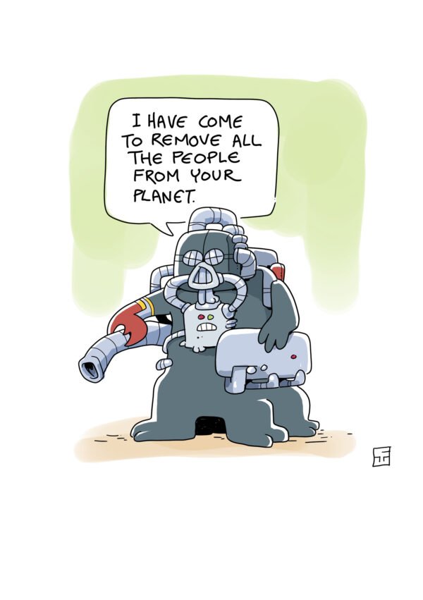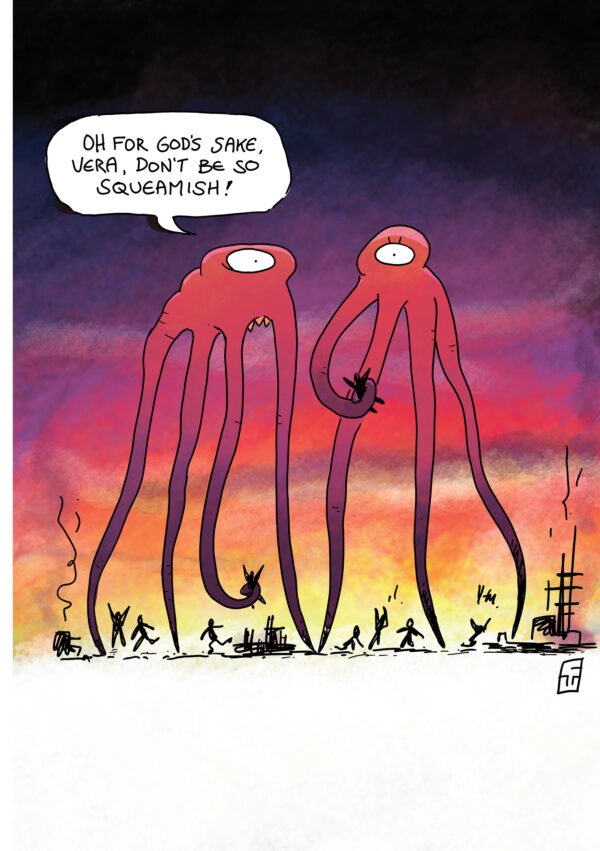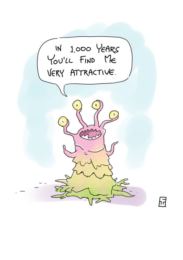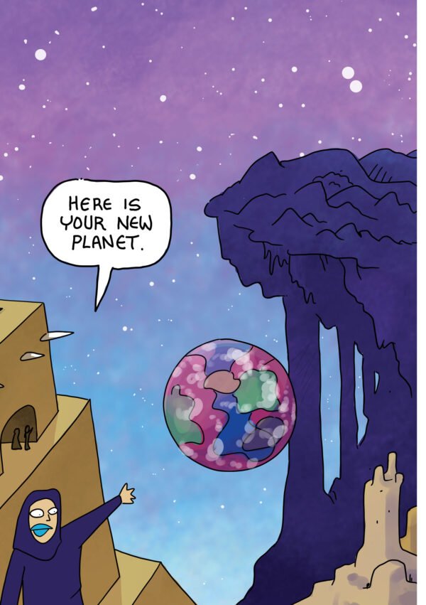 These questions and more are addressed in this cosmic collection of future-focused cartoons by artist Chuck Whelon.