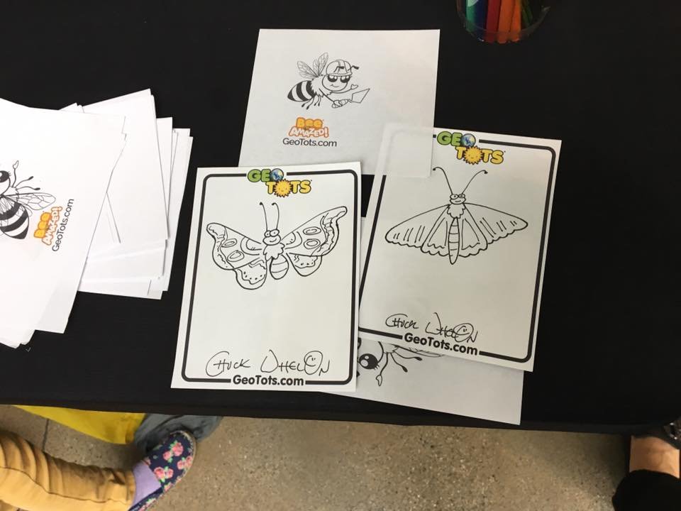 Here are some pictures of me at the California Academy of Sciences, in San Francisco’s Golden Gate Park. I am drawing pollinators for the kids, as part of the Academy’s annual Spring Festival, in my capacity as illustrator for GeoTots. Now I know what it is like to be an exhibit at the zoo!