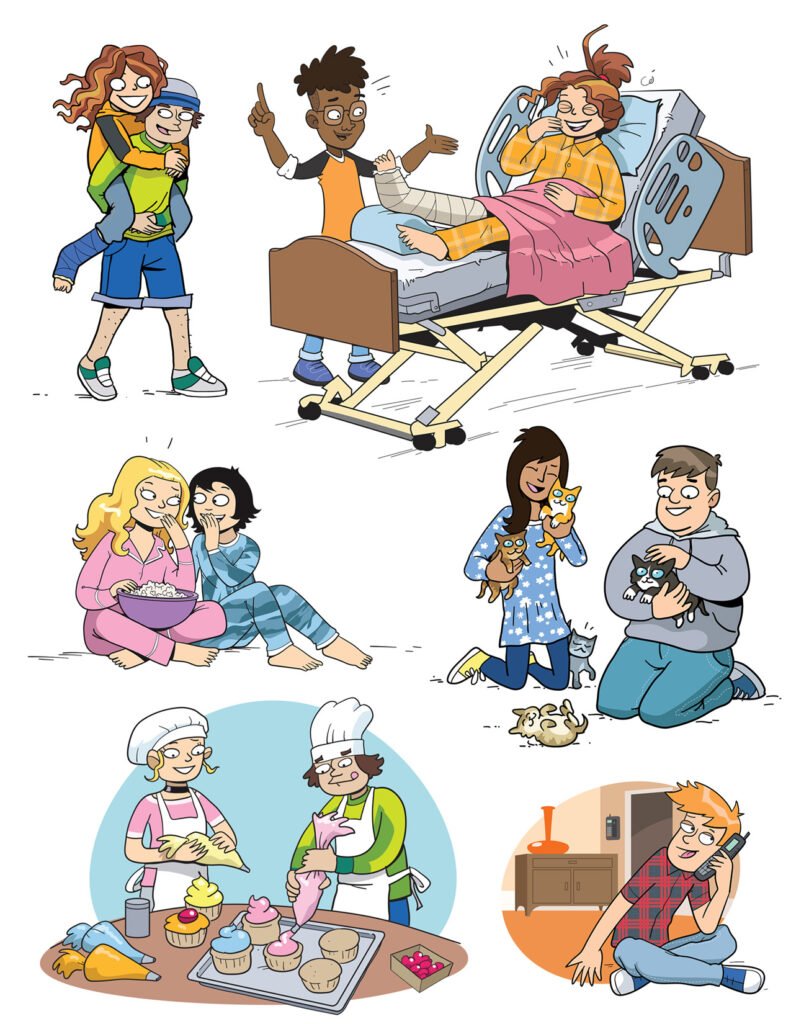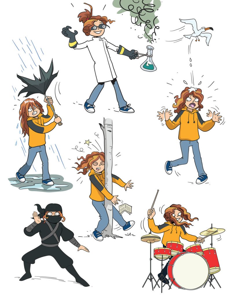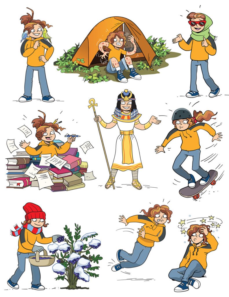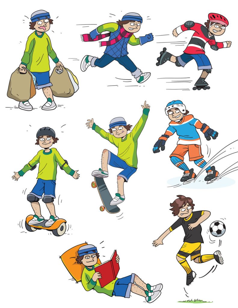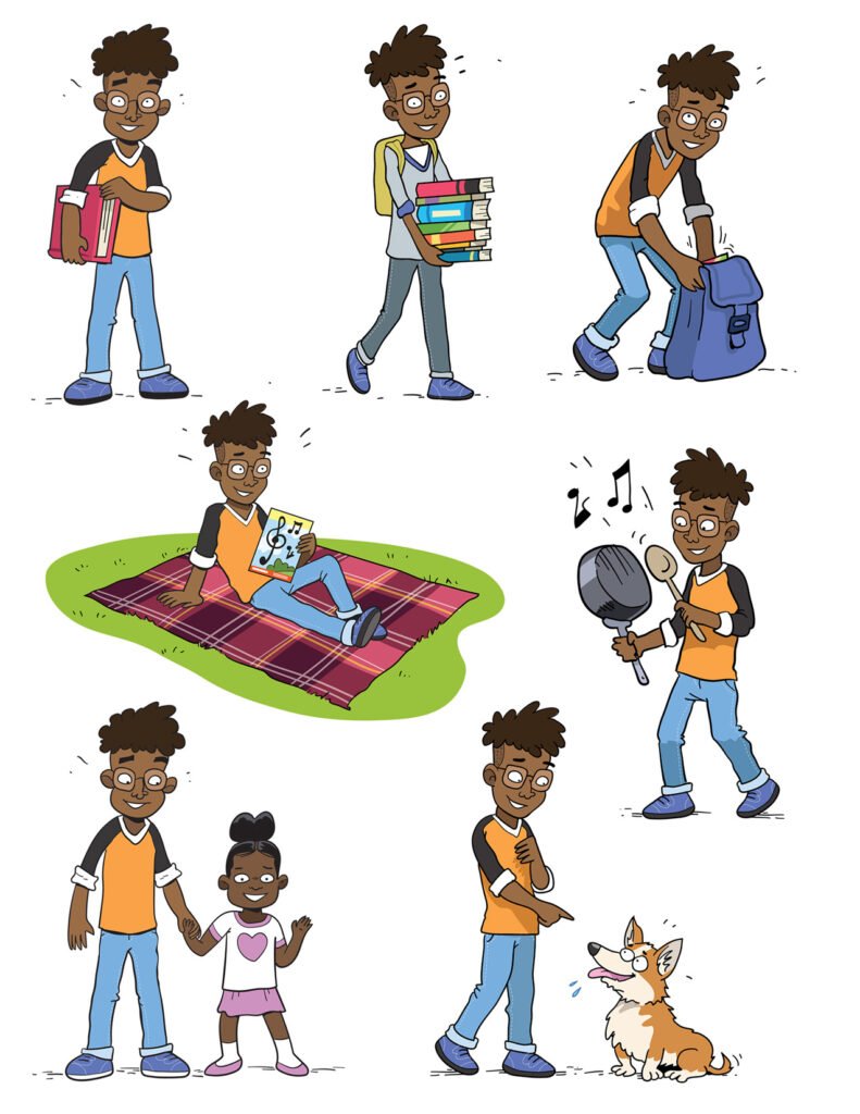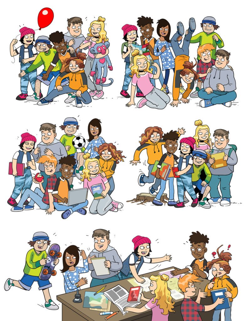 Les Inséparables are characters designed by Chuck Whelon and commissioned by T.C. Media‘s Chenelière Éducation in Quebec Canada for use in schoolbooks teaching Language Skills to 5th and 6th Grade Students. Artwork ©Chuck Whelon 2020
