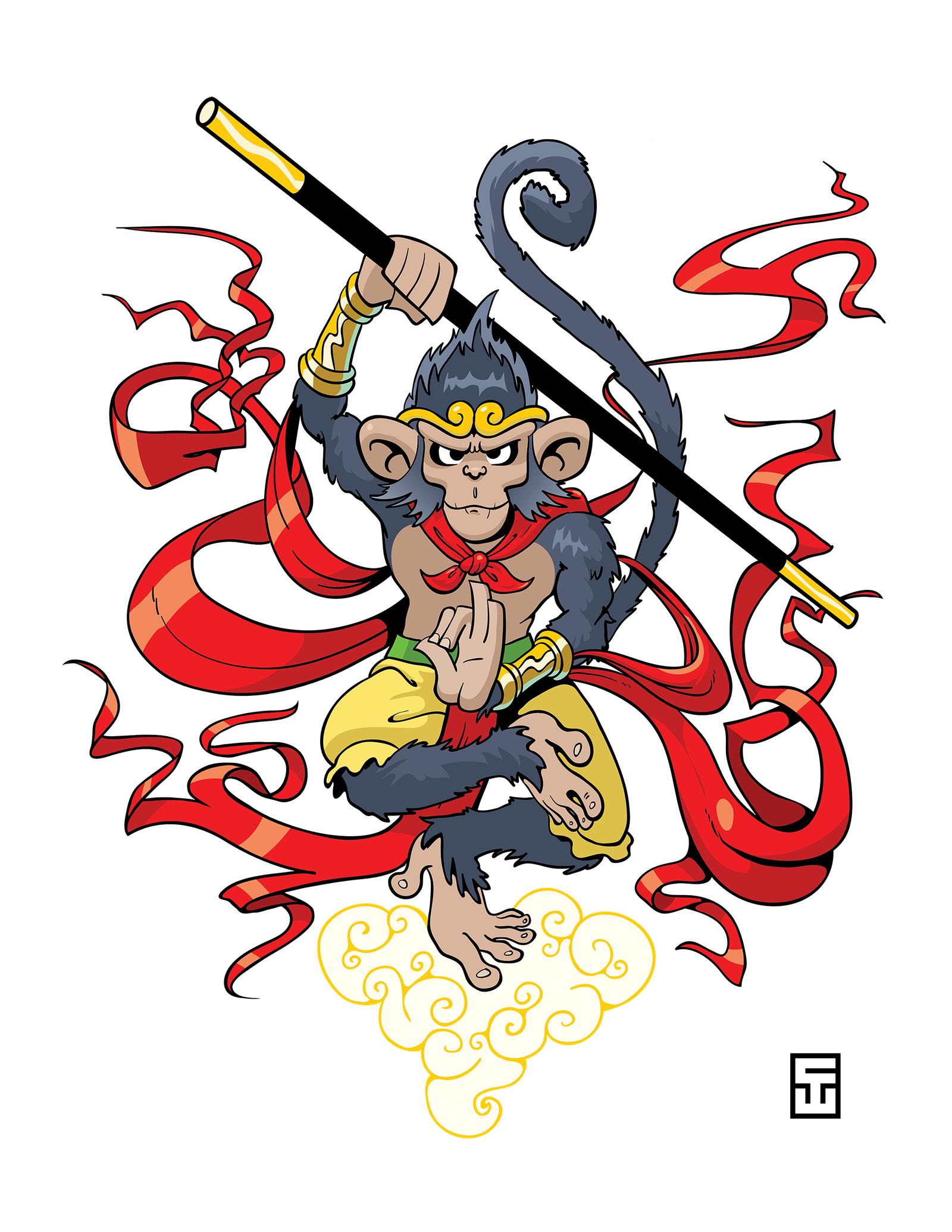 This has been a popular design in my Redbubble store. I have always loved stories about the Monkey King, since watching the old Monkey Magic show on TV in England as a kid in the 1970s. My design is much inspired by that one, but I also saw the various movie incarnations over the years and, eventually, read Journey to the West…. Hmmm… I think there might be a bit of “Planet of the Apes” in there too.