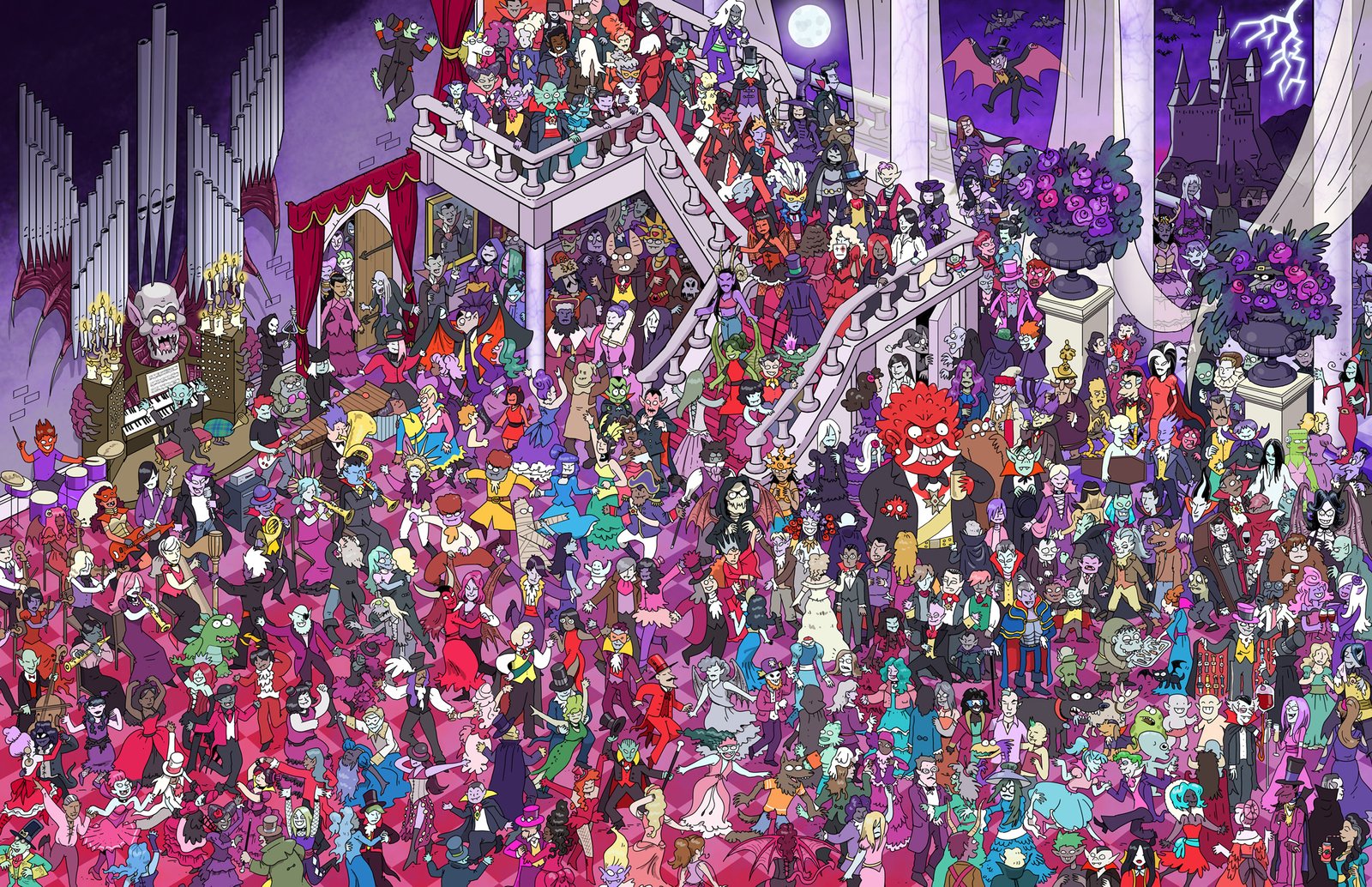 Dance the night away at the Vampire’s Ball. This is a completed scene from my upcoming book: “Where’s the Monster?”. Available as a jigsaw puzzle as well as various different products including T-shirts, posters & prints in my Redbubble store: