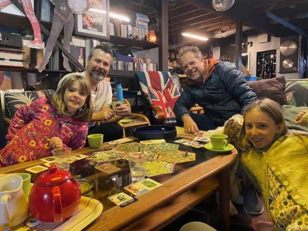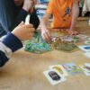 I, playing as the Minstrel, was the first person to have 3 crown jewels, but I was a long way from the castle. The 16yo playing as the Young Wizard, came after me with her creatures and easily took 2 of the crown jewels from me as I couldn’t escape her fast enough and she was able to attack me on consecutive turns. She then was able to get a good roll and quickly move to the Marketplace. She had recently been to the Marketplace and exchanged cards, so she knew what was in the marketplace. She now exchanged cards again, pulling out a magic spell that then flew her to the Throne Room for the win.