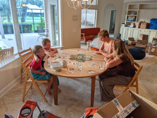 I took the game, along with another 5 or 6 with me to a friends house who was having my family and another family for dinner. My friends wife and their 16yo daughter usually play board games with me when we get together. The other couple at the dinner have a 10yo boy. He and his mom played Transamerica with us the last time we were all together.