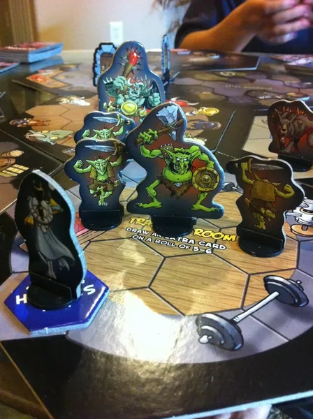 Those Pesky Humans board game turns the classic dungeon crawl on its head. Instead of playing the heroes, one player commands the Monster Lord and his minions, while the other players control the pesky humans invading the lair. The adventurers must steal the three Legendary Gem Stones and escape alive, while the Monsters fight to protect their treasure at all costs.
